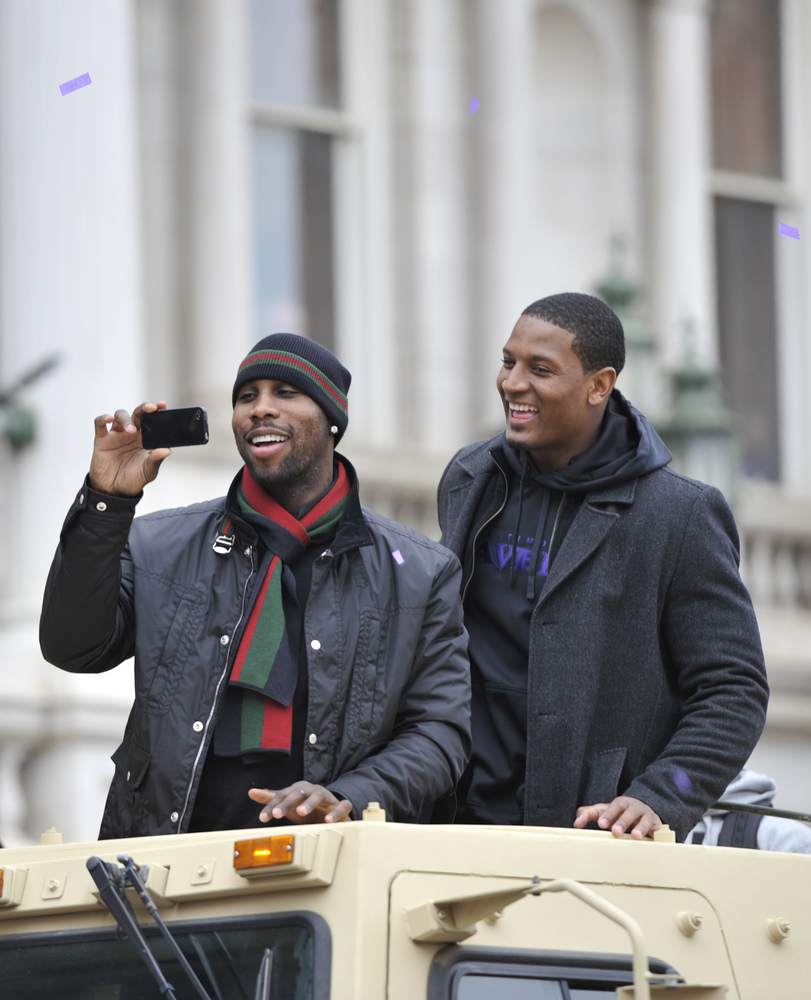 NFL Super Bowl XLVII Champion Baltimore Ravens return home for they official parade. M&T Bank stadium was filled to capacity with fans and supporters as well outside throughout the downtown area of Baltimore. Standout players retiring linebacker Ray Lewis,Ed Reed,and Joe Flacco were few who spoke to the crowd. Ray Lewis gathers a few teammates Jacoby Jones and Ed Reed for his last dance checkout at the link below